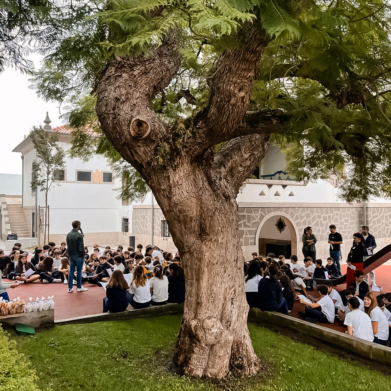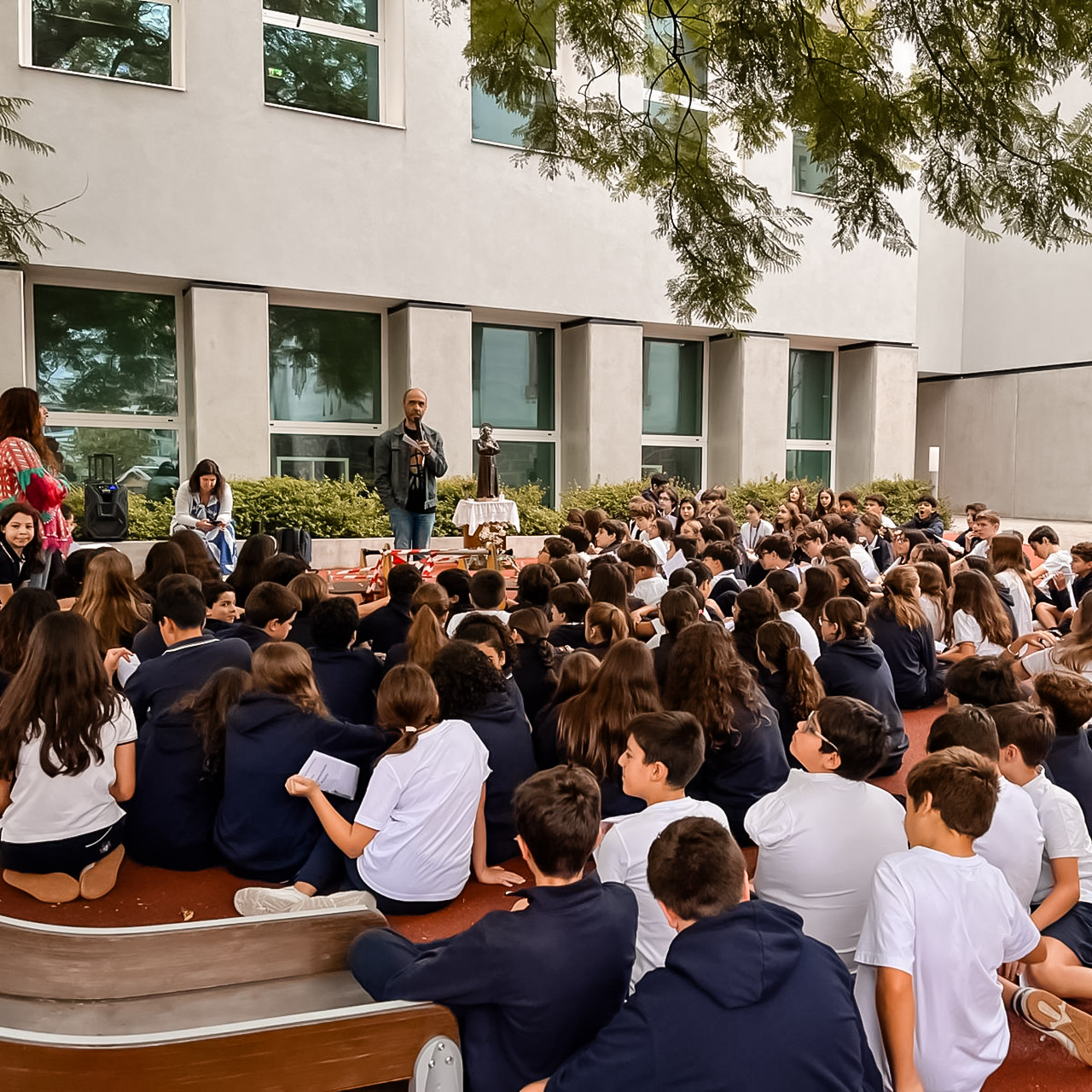 De entre outras coisas, os alunos dos 1º e 2º ciclos celebraram a eucaristia na igreja paroquial do Amial. Os restantes alunos tiveram um momento de oração junto ao jacarandá centenário de um dos nossos espaços de recreio, louvando a Deus pela natureza, ao jeito de São Francisco, no ano em que celebramos os 800 anos do seu Cântico das Criaturas.