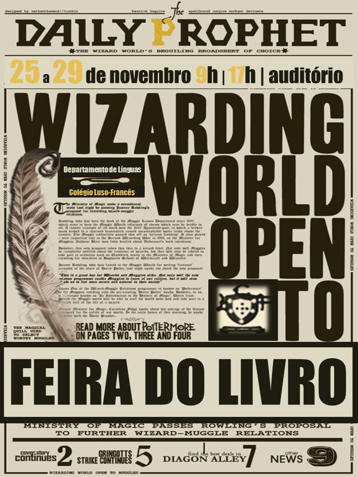O Departamento de Línguas tem muito gosto em poder contar com a presença de todos na abertura da Feira do Livro 2019, que terá lugar na segunda feira dia 25, pelas 21h.A Feira do Livro decorrerá de 25 a 29 de novembro, das 9h00 às 17h00.