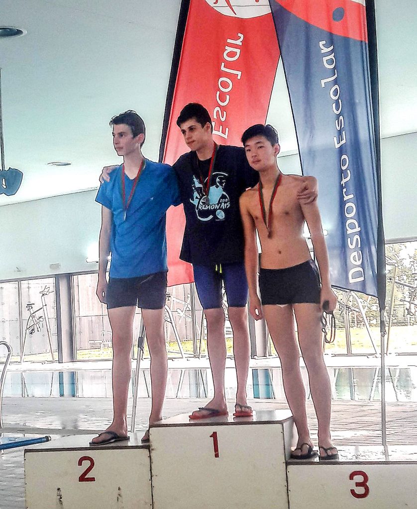 Recordamos a conquista da medalha de bronze nas finais regionais de Desporto Escolar – Natação, pelo Filipe Huang na prova de 200m metros Bruços. O Filipe classificou-se ainda no 4º e no 5º lugar nas provas de 50m Bruços e 100m bruços, as provas realizaram-se na piscina municipal de Oliveira de Azeméis.