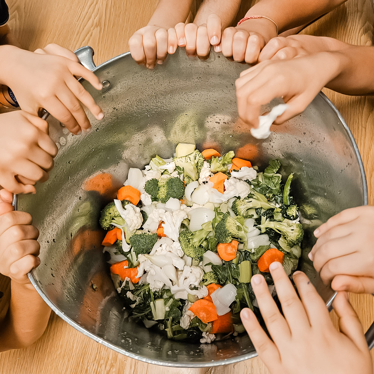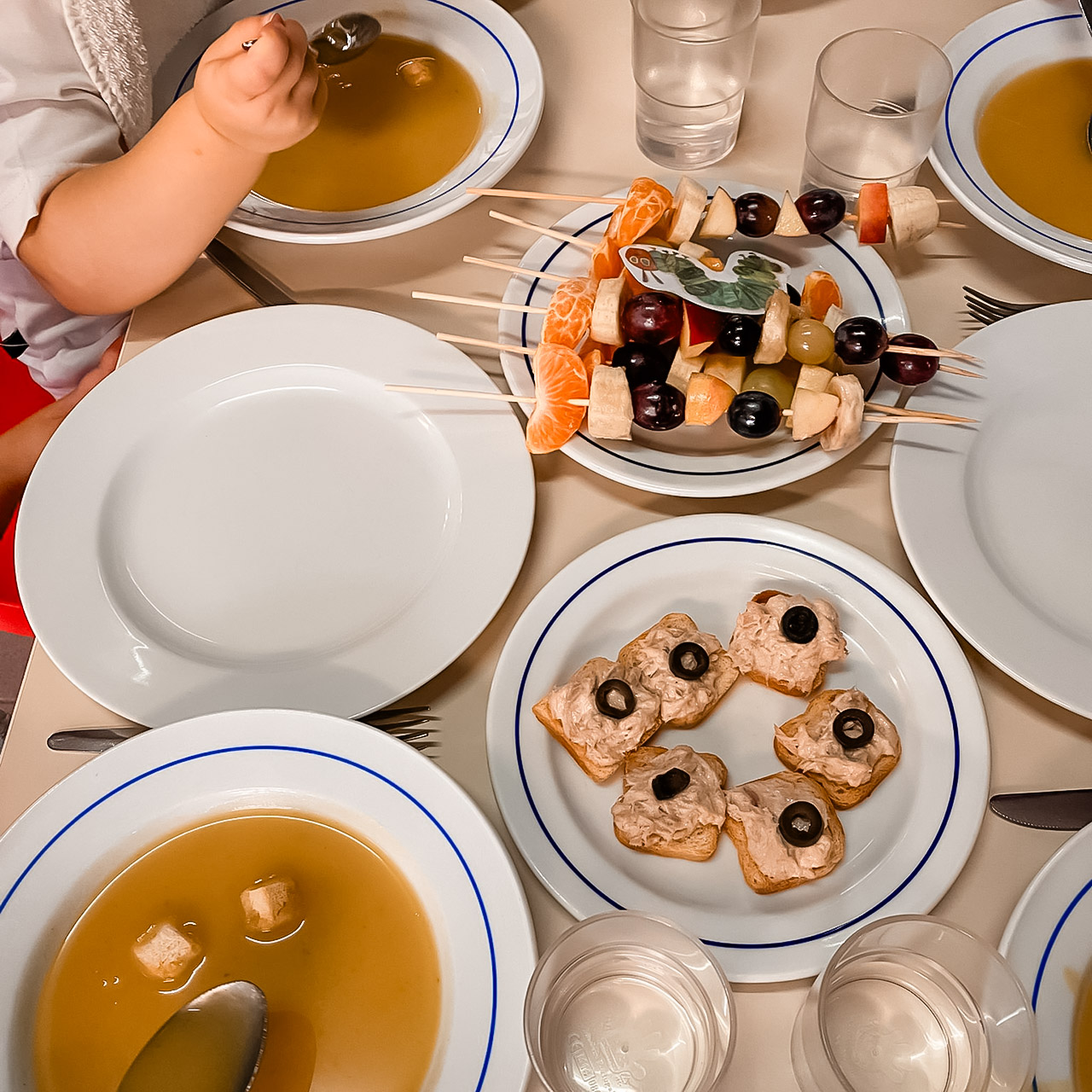 No passado dia 16 de outubro as crianças do pré-escolar prepararam um almoço especialmente saudável. Os grupos dos 3 anos elaboraram uma entrada (tosta com patê de atum e azeitona). Os grupos de 5 anos confecionaram uma sopa deliciosa com legumes variados. Os 4 anos ficaram responsáveis pela sobremesa com uma espetada de fruta colorida.