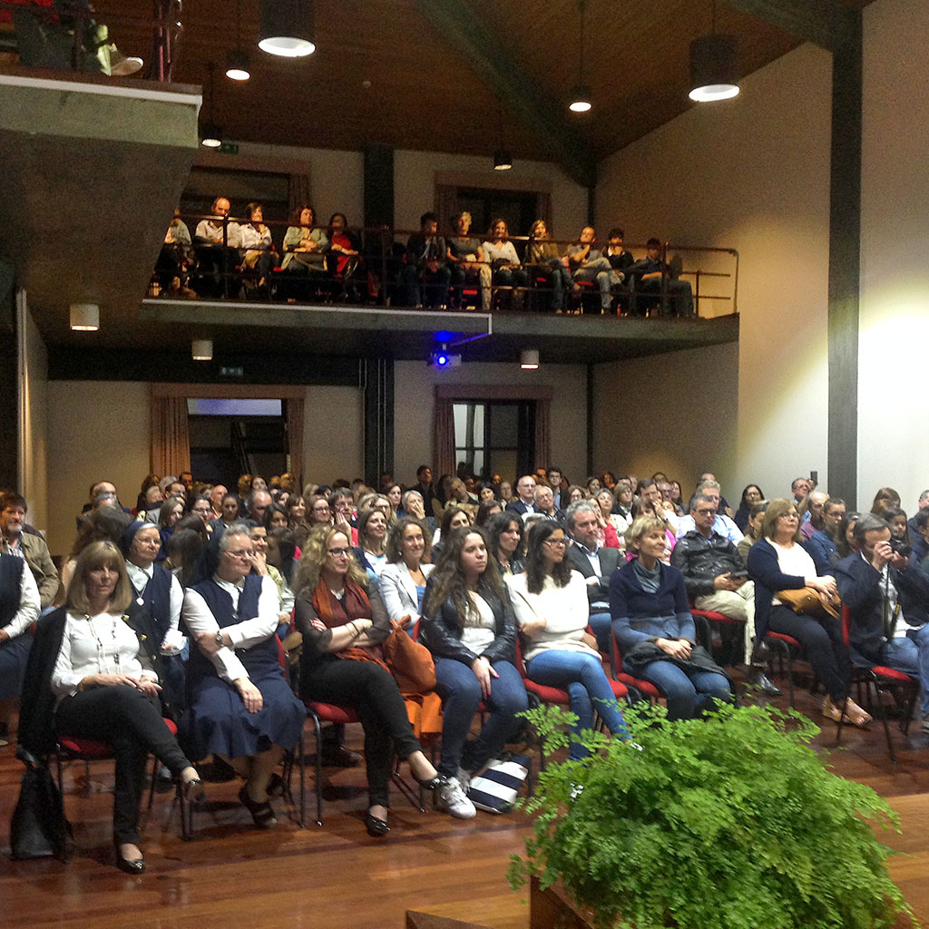O auditório ficou lotado por alunos, pais e professores, que se juntaram para ouvirem o Dr. J. Pinto da Costa, o Dr. Júlio Machado Vaz, a Dr.ª Inês Ferreira Leite, a Dr.ª Edna Gonçalves e o Frei Fernando Ventura, que partilharam connosco os seus pontos de vista e, principalmente, as suas experiências relativamente a este tema, sob a moderação da jornalista Estela Machado.