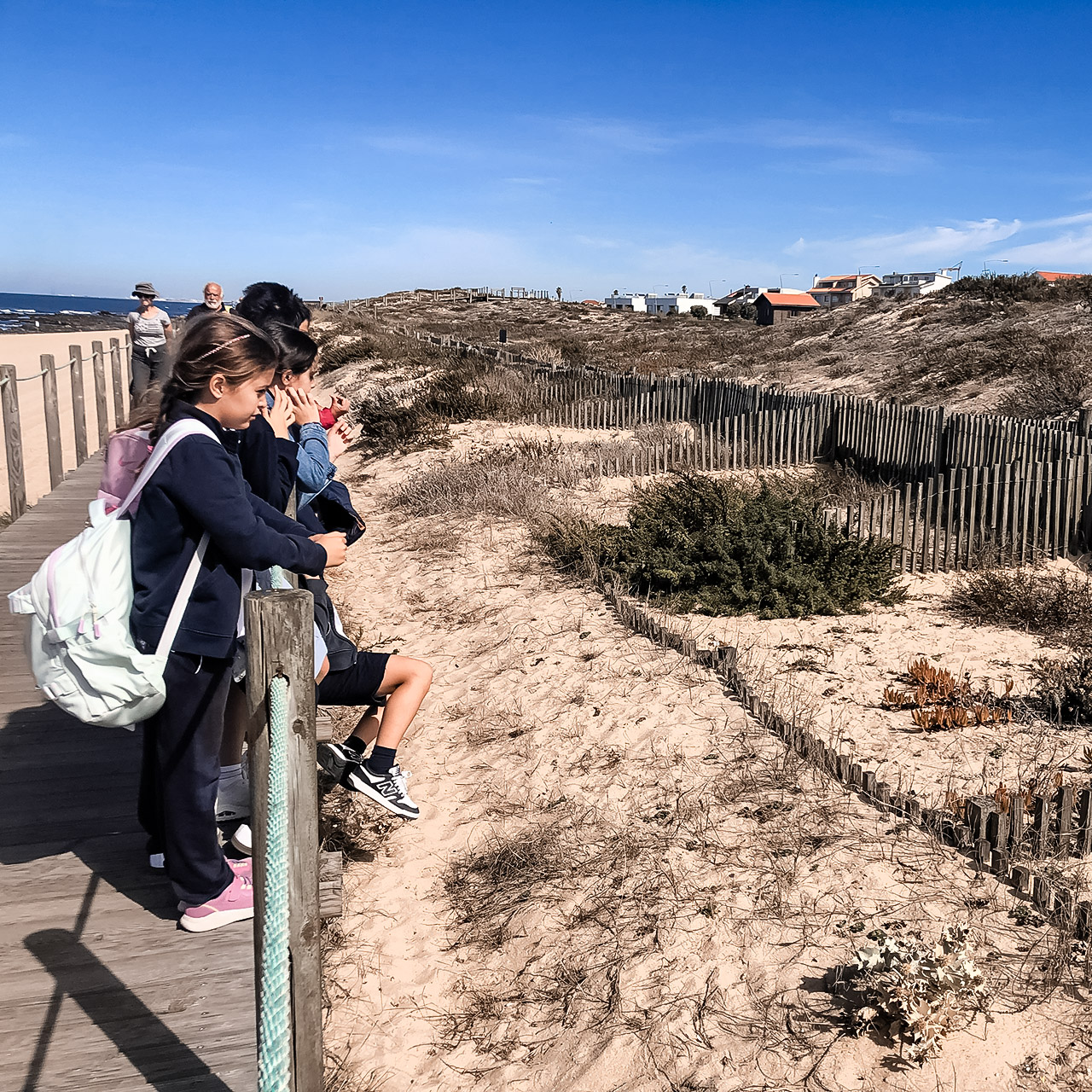 Outro momento de destaque foi a aprendizagem sobre as dunas: a sua formação, características e o papel essencial que desempenham na proteção da costa. Os alunos ficaram também sensibilizados para a necessidade da sua preservação.