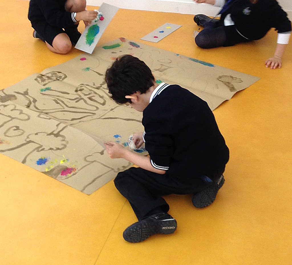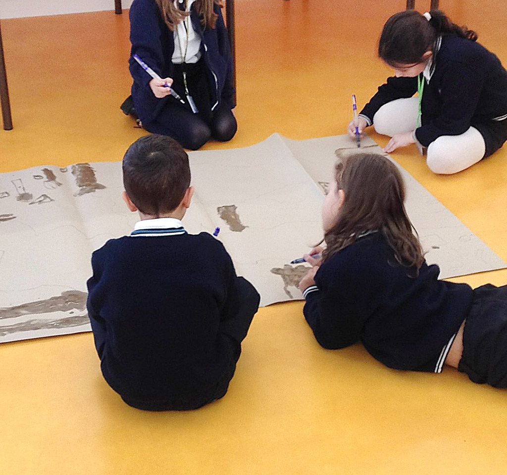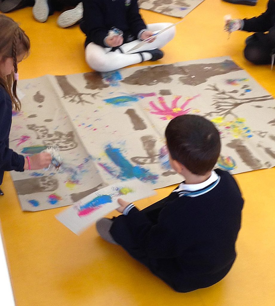 Com uma grande diversidade de recursos, os alunos brincaram em grandes folhas de papel. Estas, cheias de vida, contaram a história de cada um.